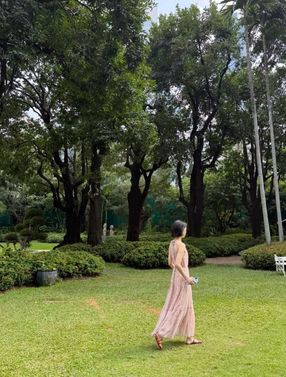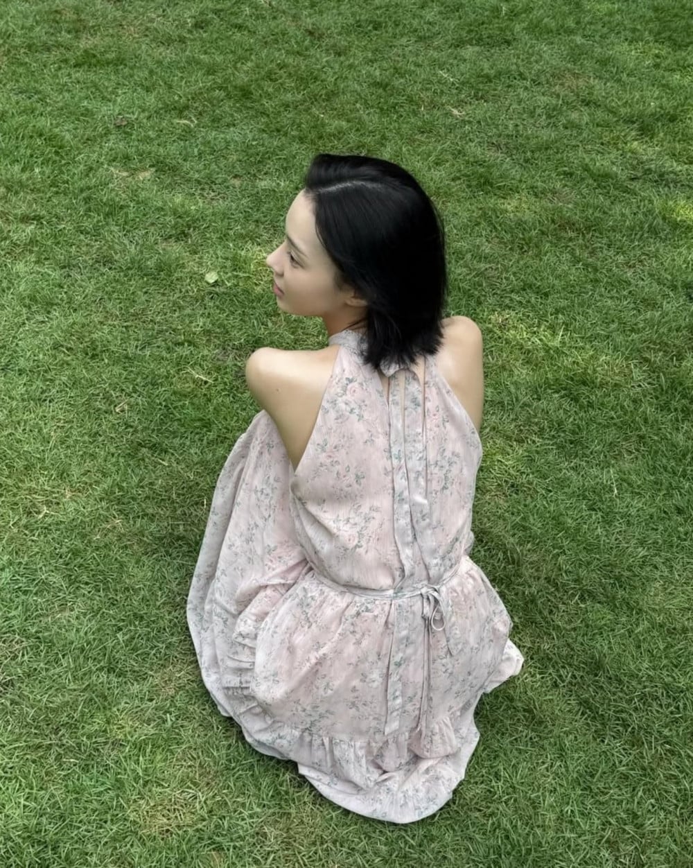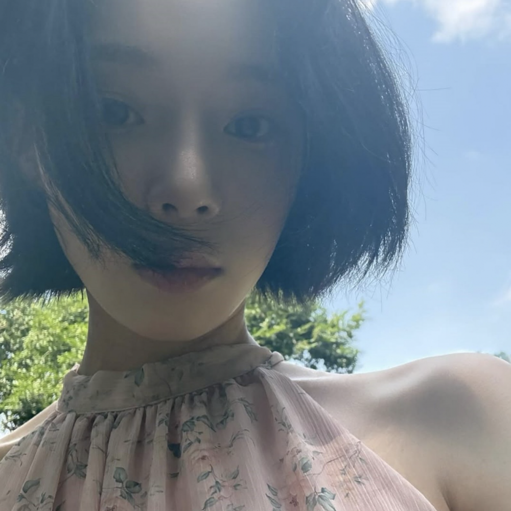 In the photos, Winter can be seen posing outdoors in various settings. Wearing a long pink skirt with a floral pattern, Winter drew attention with her delicate shoulder line and defined collarbones, highlighting her elegant visuals.