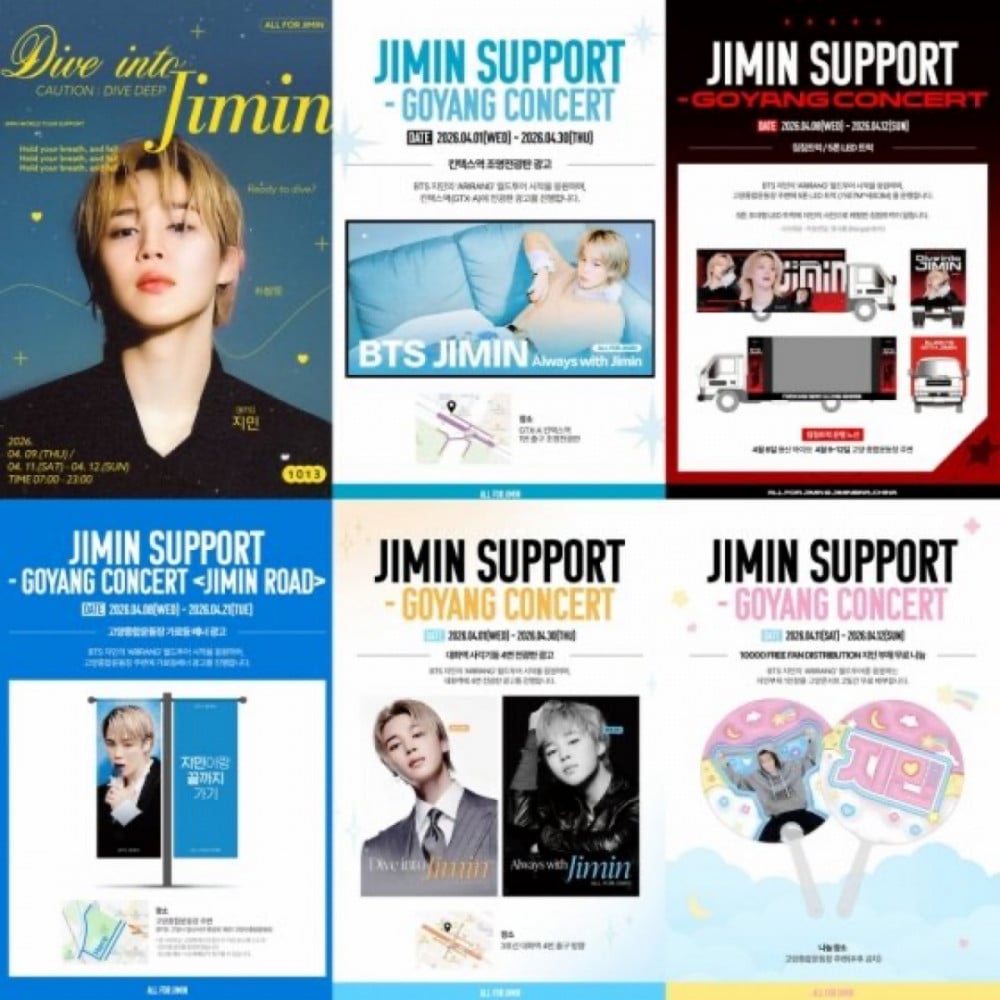 A 5 ton LED truck featuring Jimin support visuals will also be in operation, starting near HYBE headquarters in Yongsan on April 8 before moving to the Goyang Stadium area from April 9 to 12. Furthermore, 10,000 handheld fans supporting Jimin’s ‘ARIRANG’ world tour will be distributed for free over two days of the concert.