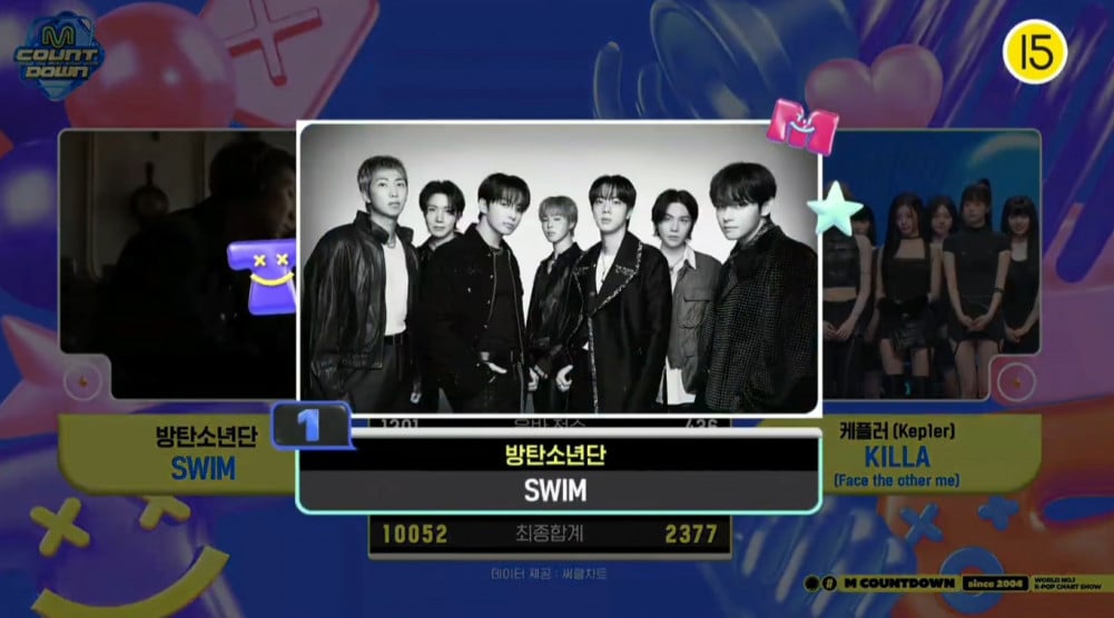 The top contenders included Kep1er with “KILLA (Face the other me),” which scored 2,377 points, while BTS with “SWIM,” earned a total of 10,052 points, holding the top spot without appearing on the show.