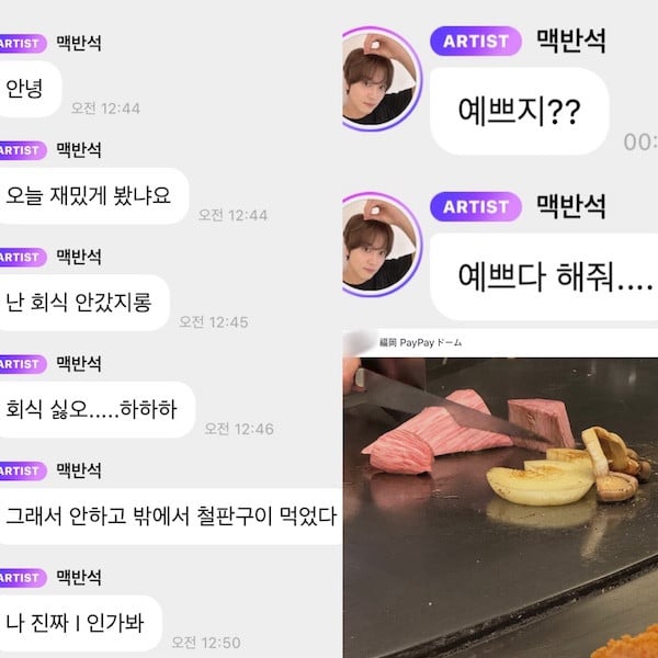 5. Posting photos of dates with Haechan (According to Bubble messages by Haechan, he went out for stir fry instead of joining in on the company celebrations after an 'SMTOWN' performance because he "doesn't like group dinners".)
