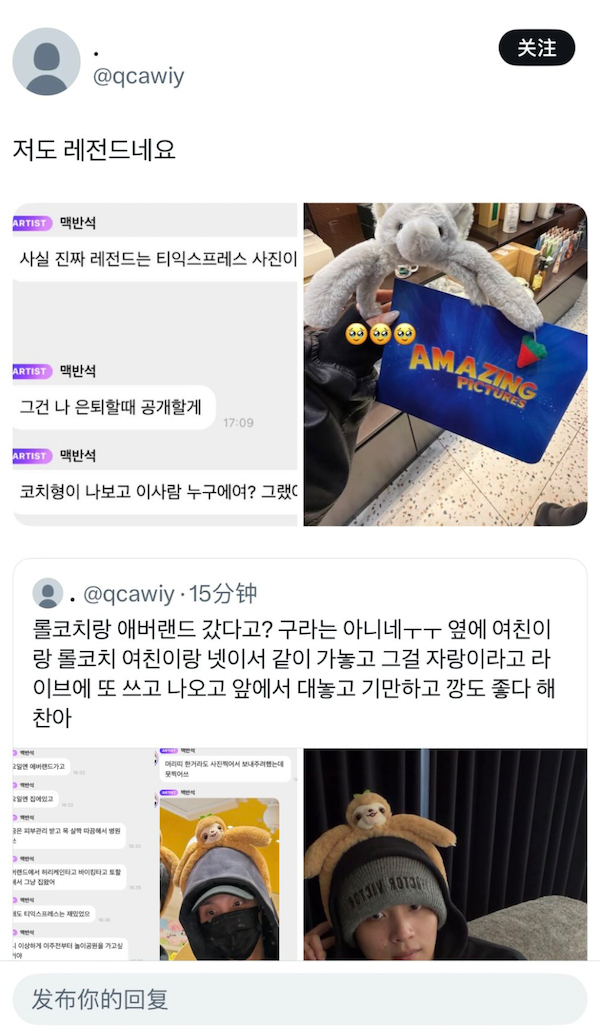 2. Posting a photo of a headband souvenir from their double date at an amusement park (Haechan also wore the same headband during a live broadcast, then also showed it off on Bubble, telling fans that he visited the amusement park with his gaming coach. Netizens claimed that the amusement park date involved Haechan, his girlfriend, the gaming coach, and the coach's girlfriend.)