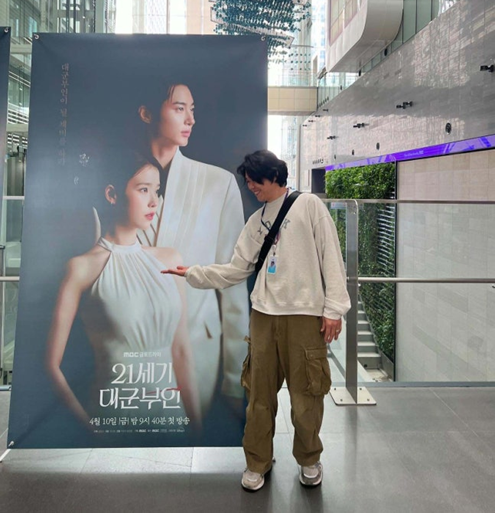 On April 2, the official account of MBC FM4U’s 'A Perfect Day with Lee Sang Soon' posted a photo along with a cryptic caption. In the image, Lee Sang Soon is seen smiling while pointing at a poster for the MBC drama 'Perfect Crown.' Attention quickly focused on the fact that the figure in the poster is IU.