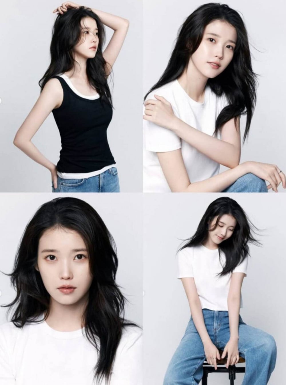 In the newly released images, IU captures attention with her minimalist styling. Wearing basic pieces such as a white T-shirt with denim or a black sleeveless top, she exudes a blend of purity and sophistication. Her natural makeup highlights her clear skin and sharp features, drawing focus to her serene yet striking appearance.