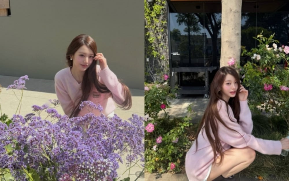 In the released images, Wonyoung poses gracefully against a backdrop of blooming flowers. She completes a lovely and feminine look by pairing a pink-toned knit top with white shorts. Her long, wavy hairstyle and bright makeup further enhance her distinct features, drawing attention to her flawless beauty. Surrounded by flowers, Wonyoung’s radiant visuals effortlessly capture the viewer’s gaze.