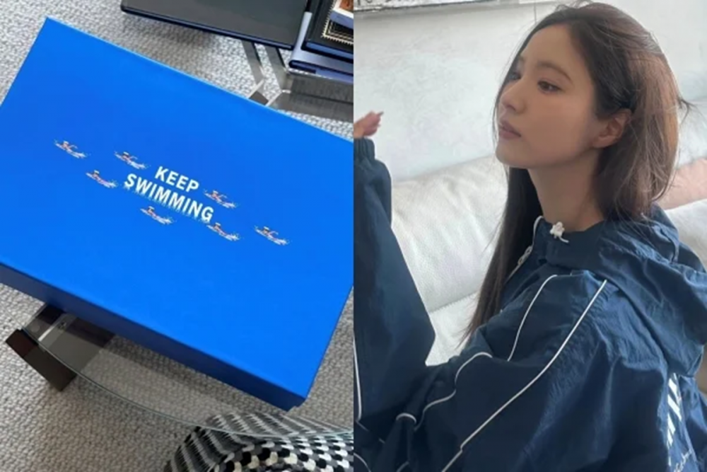 On April 4, actress Shin Se Kyung posted some exciting photos on her social media. She showed off a special box and a team outfit made for BTS's new song, "SWIM". The beautiful box features seven cute characters swimming in the ocean with the words "KEEP SWIMMING". This design perfectly represents the seven members of BTS.
