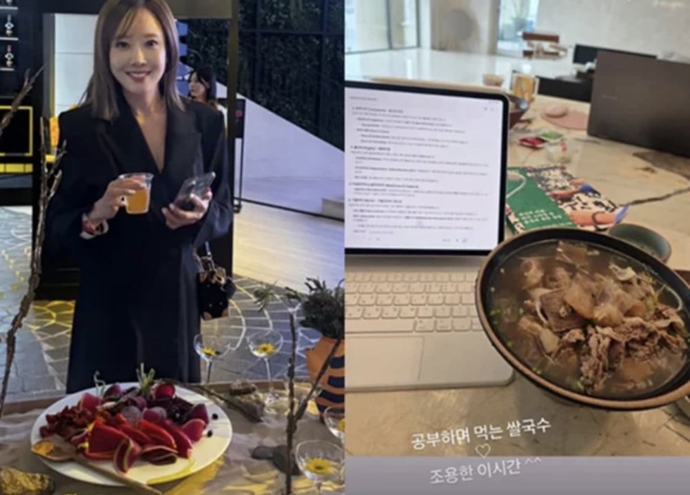 On April 7, So Yoo Jin posted several photos on her social media, capturing moments from her routine. In one image, she is seen studying with a laptop open while enjoying a bowl of pho, accompanied by captions such as “Studying while eating pho” and “This quiet time,” conveying a peaceful atmosphere.