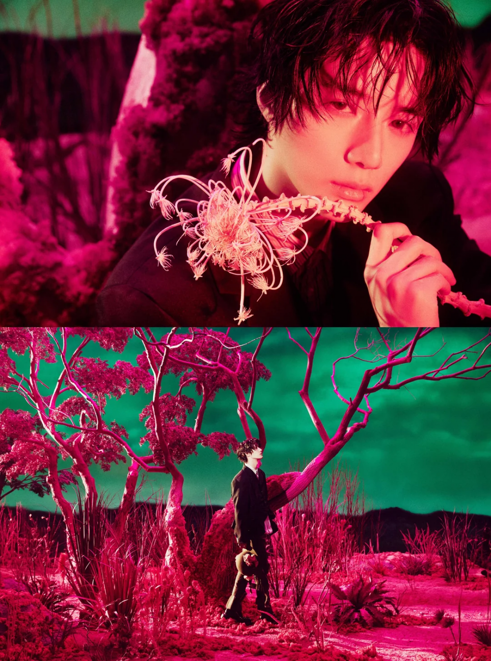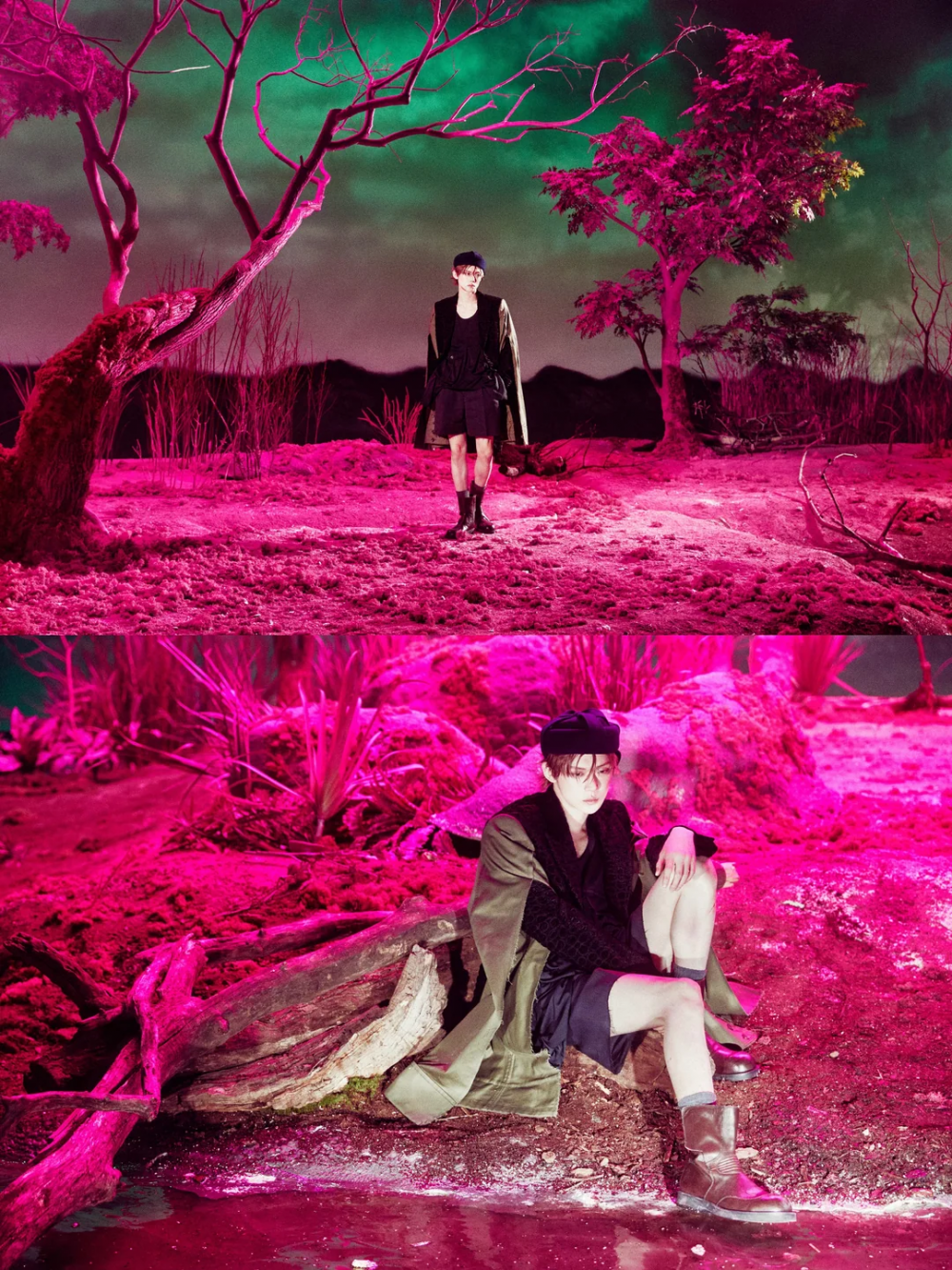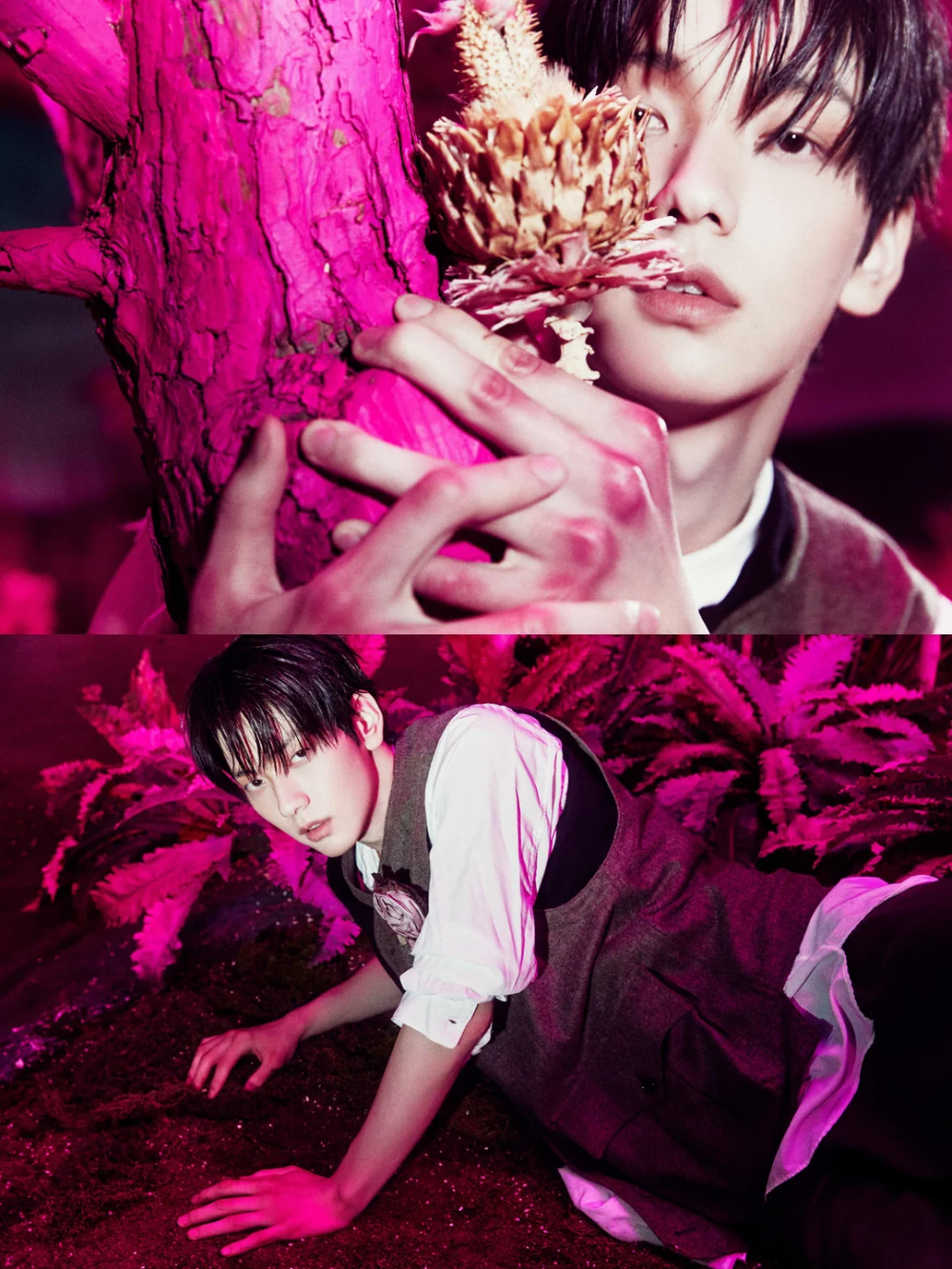 On April 2 at midnight KST, the BIGHIT MUSIC boy group dropped a set of teaser photos, revealing a whimsical yet eerie setting. In each photo, the members showcase their charisma against the mysterious pink trees.