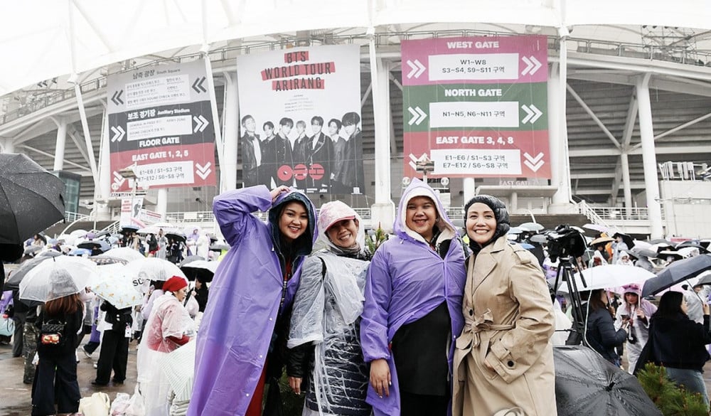The two fans, who introduced themselves as friends, explained how BTS brought them together. “We met two years ago at ‘BTS Festa’,” they said. “ARMY is one. It unites us.” BTS opened their new world tour 'ARIRANG' at Goyang Stadium’s main arena, which has a capacity of over 40,000, and showcased a 360-degree stage. The tour continues with three performances in Goyang on April 9, 11, and 12.