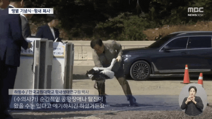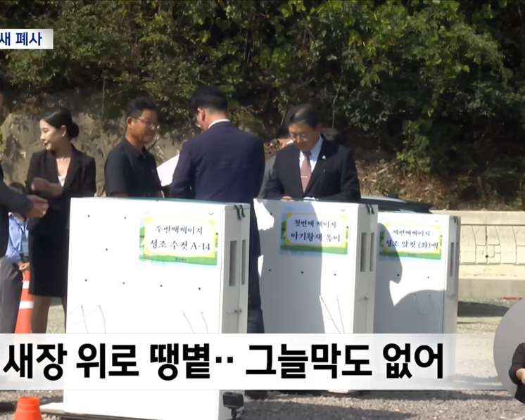 During the Science Center opening ceremony, the family of Oriental storks were transported from the restoration facility to Hwapo Ecological Park in narrow cages dotted with small air holes. They were then kept inside the cages for approximately an hour and a half while officials such as the mayor of Gimhe and National Assemblyman spoke during the ceremony's program.