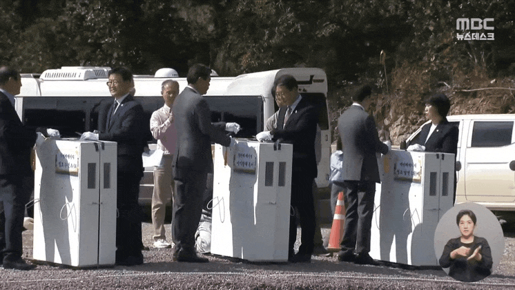 The highlight of this ceremony was the release of a family of Oriental storks, (mother, father, and offspring) raised in captivity, into the wild. Oriental storks, once native to the Korean peninsula, are considered extinct in the wild, and efforts to reintroduce Oriental storks into Korea's ecological habitat are led by a restoration facility in Bongha village, located in Gimhe.